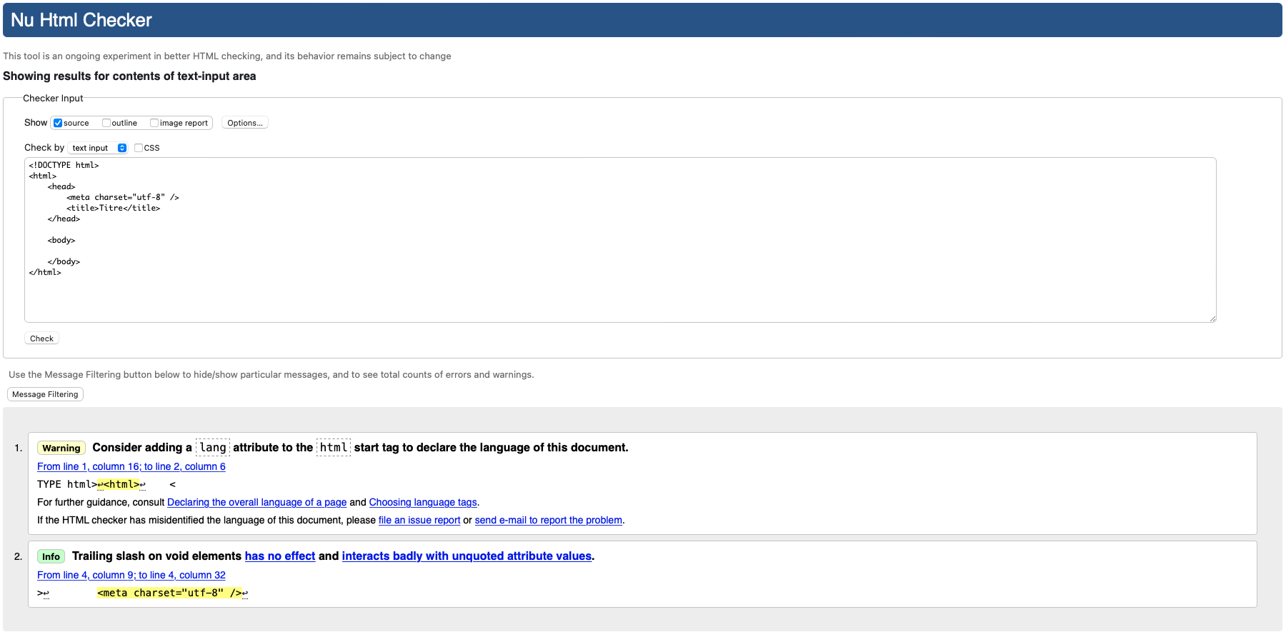 - The W3C Markup Validation Service : https://validator.w3.org/